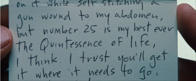 부서 동료는 회사에서 짐을 싸서 나가면서 월터에게 25번째 사진이 무엇이냐고 묻지만 월터는 일부러 보지 않았다고 합니다. 퇴직금을 받으러 회사로 돌아왔을 때, 우연히 셰릴을 만났고 월터는 셰릴이 전남편과 재결합하지 않은 걸 알게 됩니다.